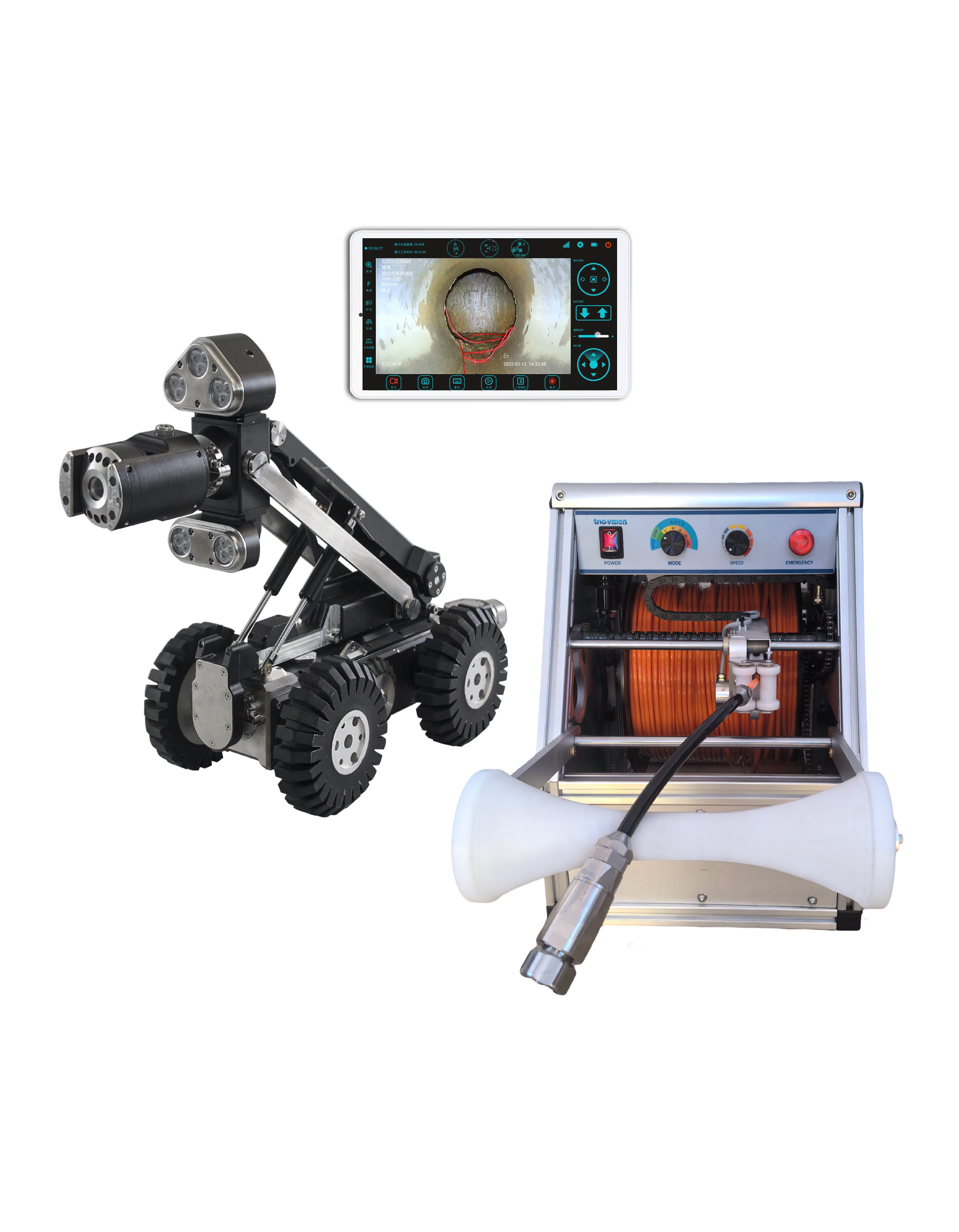 Система инспекции трубопроводов с вращением на 360 градусов для канализации/дренажа Инспекционный гусеничный аппарат для труб — это недавно разработанная гусеничная система, специально для рынков США, Великобритании и Европы. Она может инспектировать трубы диаметром от 125 до 2000 мм, используя только один гусеничный аппарат для инспекции большинства труб, что снижает затраты. Она состоит из гусеничного аппарата, камеры с панорамным наклоном, автоматической кабельной катушки и блоков управления. Гусеничный аппарат может соответствовать различным типам камер (например, камере с панорамным наклоном, осевой камере, камере «рыбий глаз») в соответствии с различными требованиями.